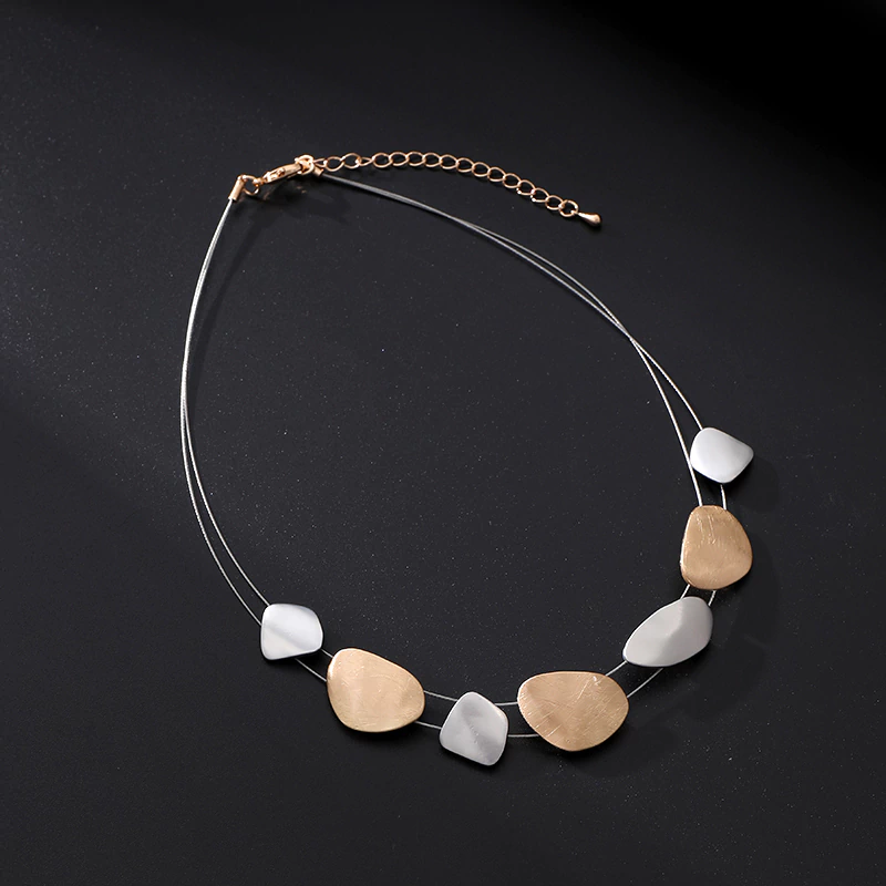 Collar corto con cordon simil serpiente , con dijes en Zinc electrolaminado combinado.